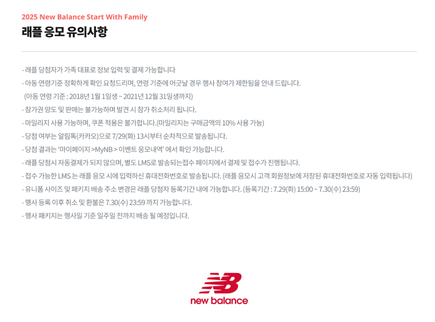 - 래플 참여기간 : 7.24(목) 10:00 ~ 7.27(일) 23:59 (4일간)