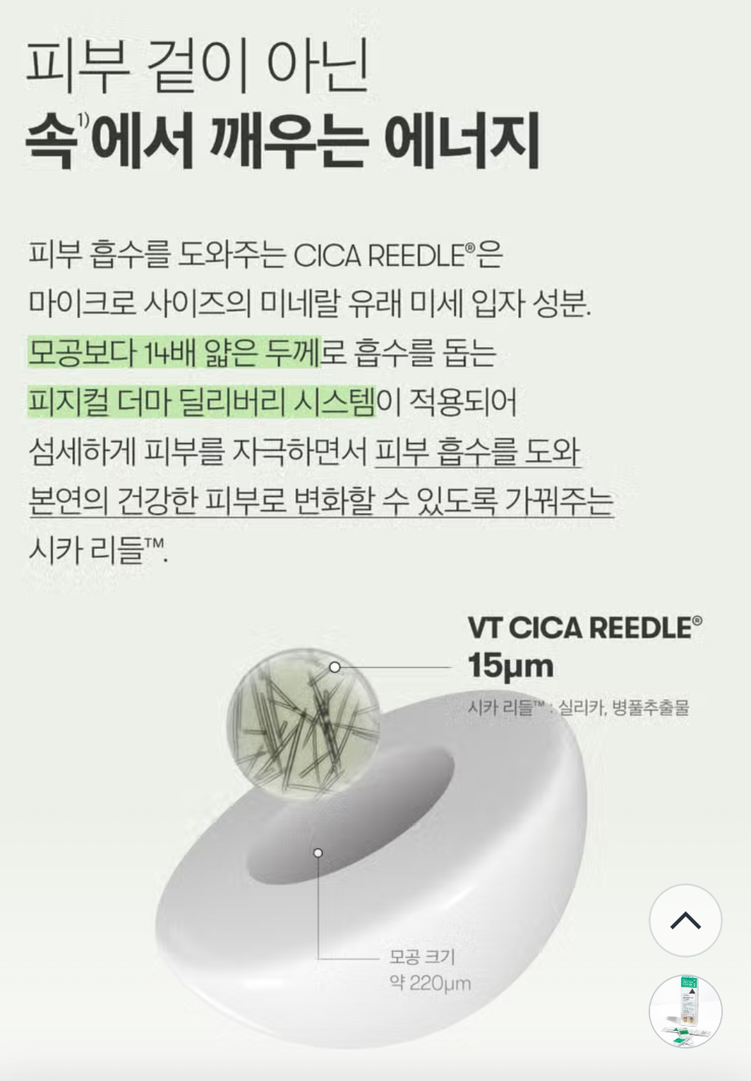 - 특징: 마이크로 니들(스파이클) 성분이 각질층에 자극 없이 침투 → 피부결 개선 + 흡수력 증가
